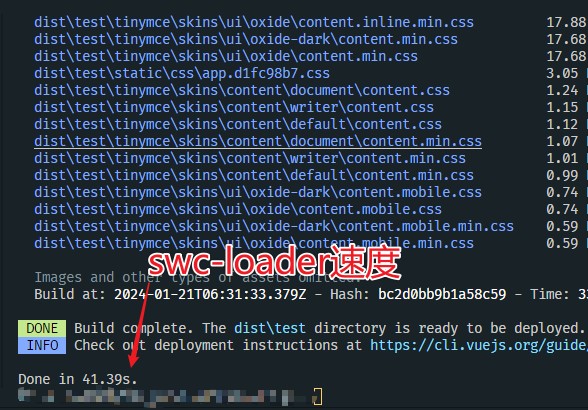 swc-loader的配置和babel-loader的配置基本上是一样的,但是swc-loader的打包速度比babel-loader快了不少